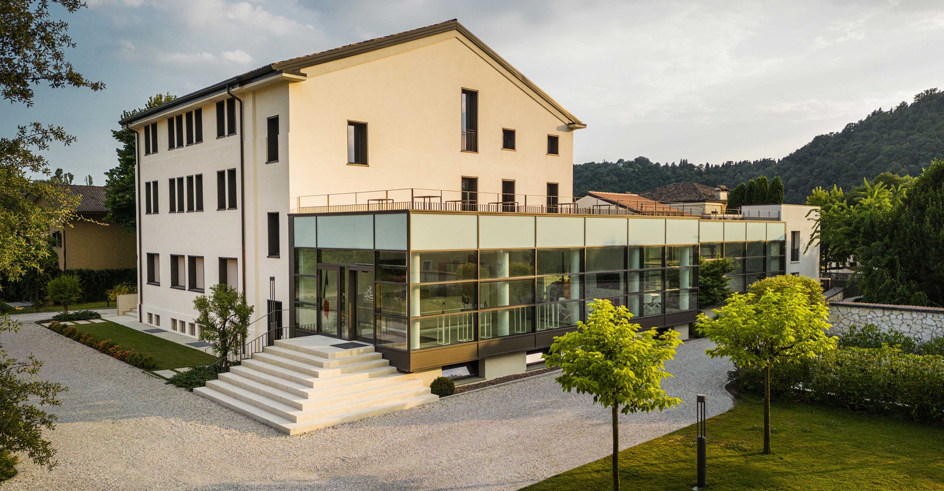 IL PROGETTO PREVEDE LA RISTRUTTURAZIONE DI UN COMPENDIO IMMOBILIARE IN DISUSO IN UNA NUOVA SEDE DIREZIONALE DI UN'IMPORTANTE STUDIO DI COMMERCIALISTI DI VICENZA. L'AREA SI TROVA NELLA VALLETTA DEL SILENZIO, A POCHI PASSI DA VILLA "LA ROTONDA" DI ANDREA PALLADIO, PATRIMONIO UNESCO.
